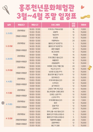 홍성군 홍주천년문화체험관은 다가오는 봄을 맞아 오는 21일부터 4월 26일까지 매주 주말마다 다채로운 주말 체험 프로그램을 운영한다고 밝혔다